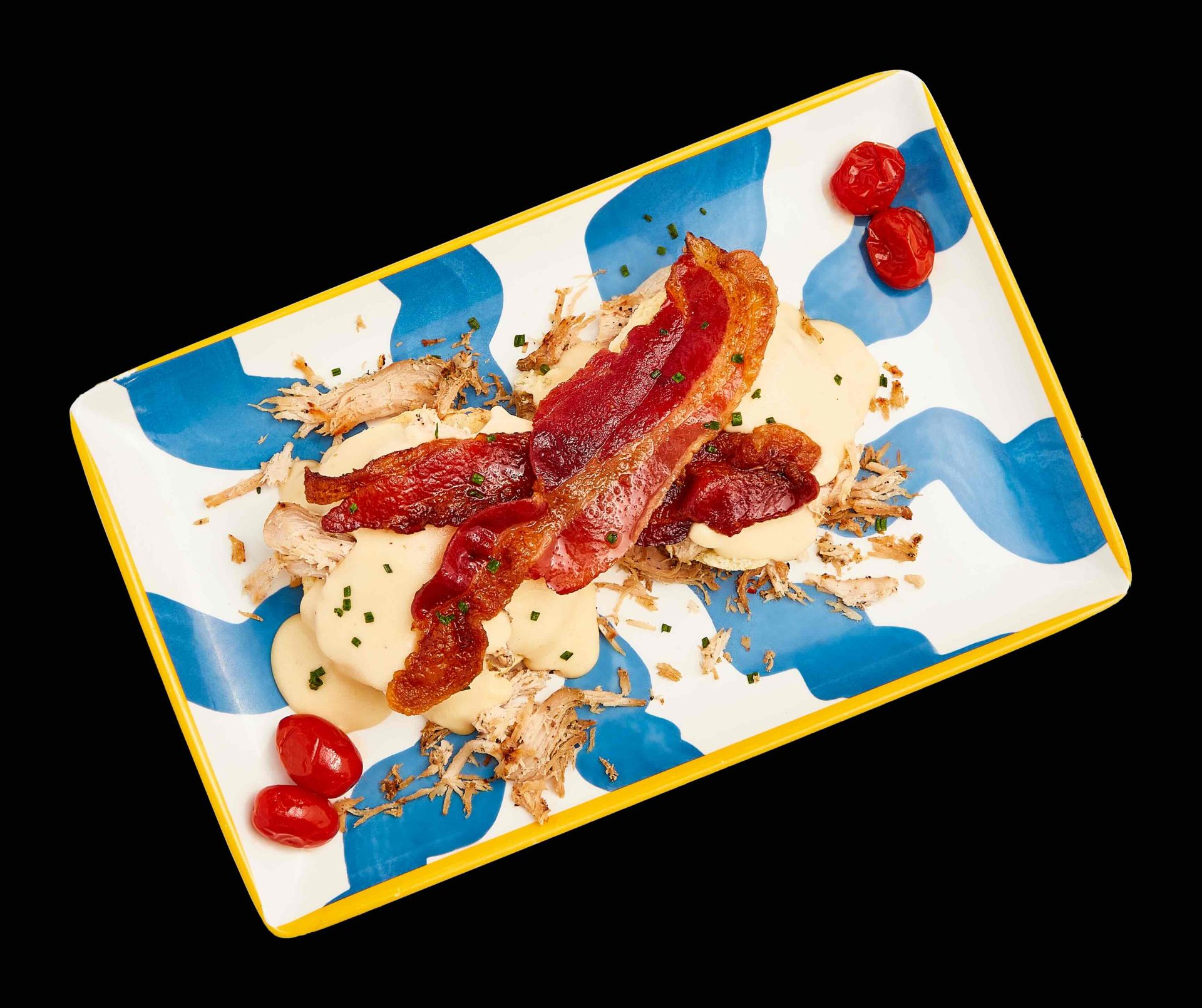 Hot Brown Biscuits & Gravy: Turkey, smoked gouda mornay, bacon, roasted tomato served on an open-faced biscuit
